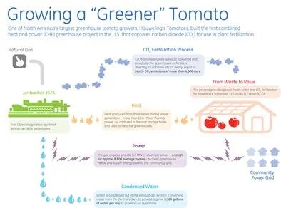 Heat produced by the boilers and the engine cooling system helps to heat the greenhouse to reduce energy input costs.